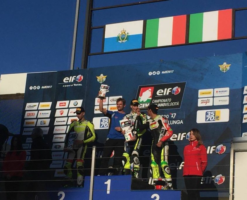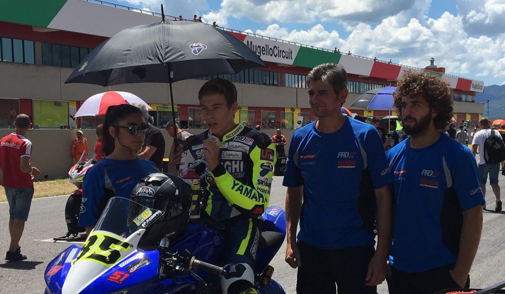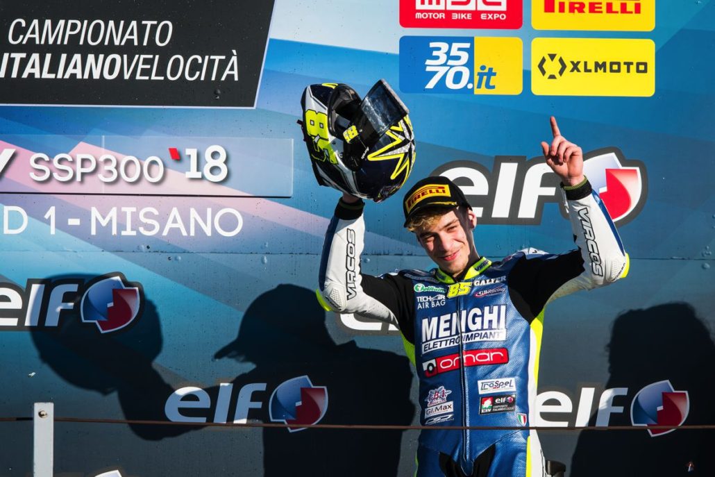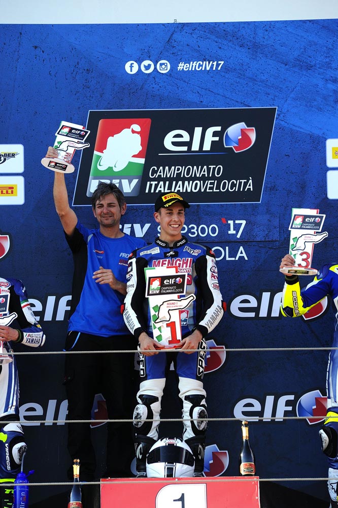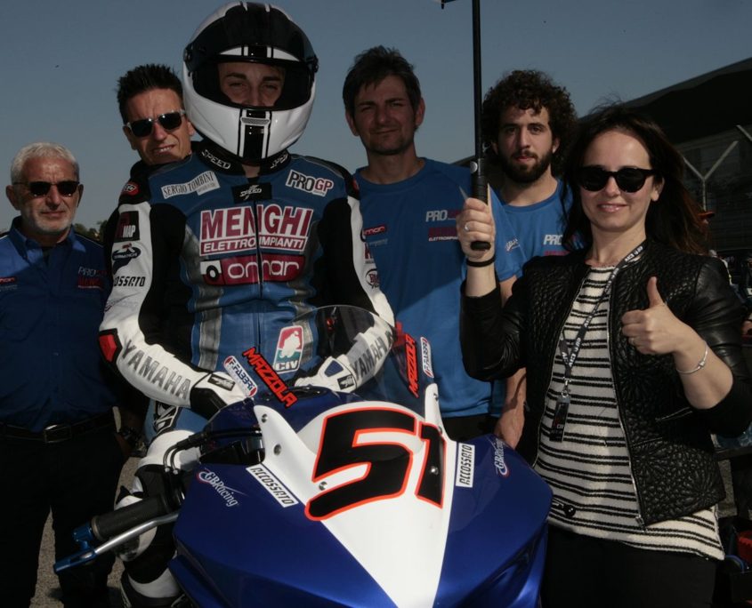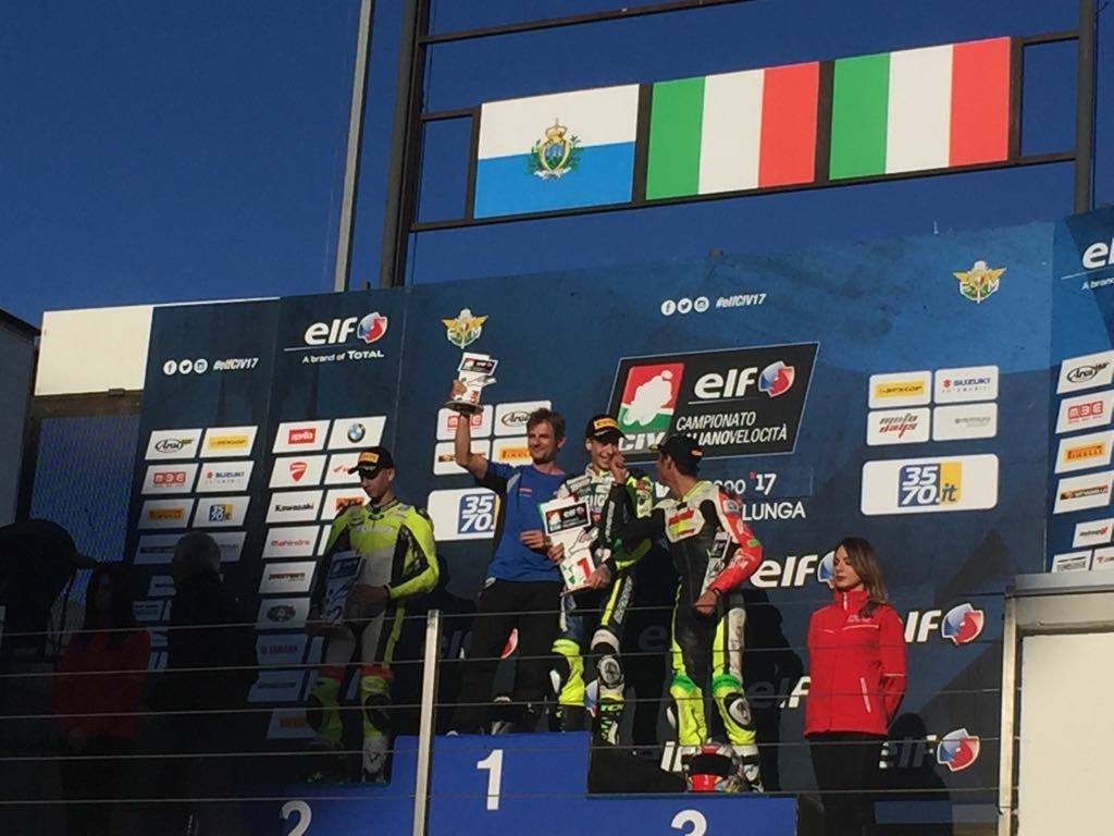Il Campionato inizia con una prestazione superlativa di Kevin Sabatucci che, al Misano World Circuit, sale per ben due volte sul terzo gradino del podio. Lo fa zoppicando, con l’aiuto di una stampella, ma in sella alla Yamaha del Team ProGP Racing non si nota alcuna differenza. Merito della sua determinazione e di quella grinta che fa del pilota ascolano un vero fuoriclasse.
