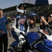 Sabato 7 aprile, in Gara 1, stupisce tutti decidendo di scendere in pista nonostante la gamba sinistra sia ancora dolorante dopo il brutto incidente nell’ultima tornata di prove di un paio di settimane fa. E, visto che era il suo compleanno, decide di regalarsi una cavalcata a gomiti larghi e ventre basso per ben 12 giri. Sempre in bagarre, fino alla fine, fino all’errore fatale del gruppetto di avversari che nell’ultimo giro finiscono a terra a pochi metri da lui. La lucidità gli permette di schivarli e chiude al terzo posto.