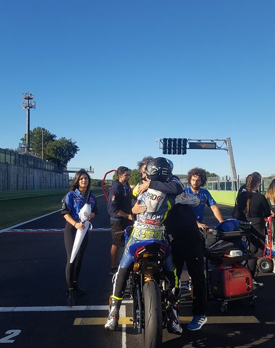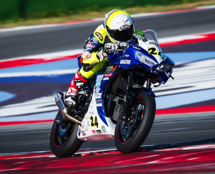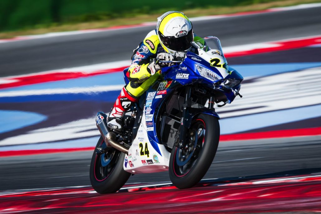 Esordio in SuperSport 300 meno fortunato per Matteo Bertè che in griglia parte alle spalle di Sabatucci, ma che in gara finisce stretto nel drappello dei più agguerriti inseguitori. In Gara 1 durante un duello con un avversario gli si chiude l’anteriore e finisce a terra; con caparbietà si rialza, torna ai box per un check e riparte chiudendo la gara nelle retrovie, ma facendo esperienza. In Gara 2 si ripropone lo stesso scenario del giorno precedente. Matteo finisce inghiottito in 15^ posizione fino a metà gara, quando una carambola di piloti trascina a terra anche lui. Matteo finisce il primo weekend i gare in radiologia per controllare la caviglia dolorante. Nulla di serio, per fortuna. Ritorna a Trento con la consapevolezza che in SuperSport 300 occorre sempre guardarsi le spalle e nessuno si risparmia mai fino alla fine.